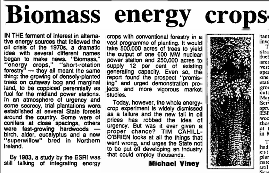 Biomass Energy Crops - What Went Wrong (Irish Times, 1986 - click to expand)